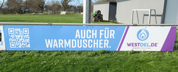 Die WESTOEL GmbH, einer unserer Hauptsponsoren, hat seine Bande komplett erneuert und mit einem aktuellen, neuen Logo versehen. Sie leuchtet jetzt in hellblau und dezentem